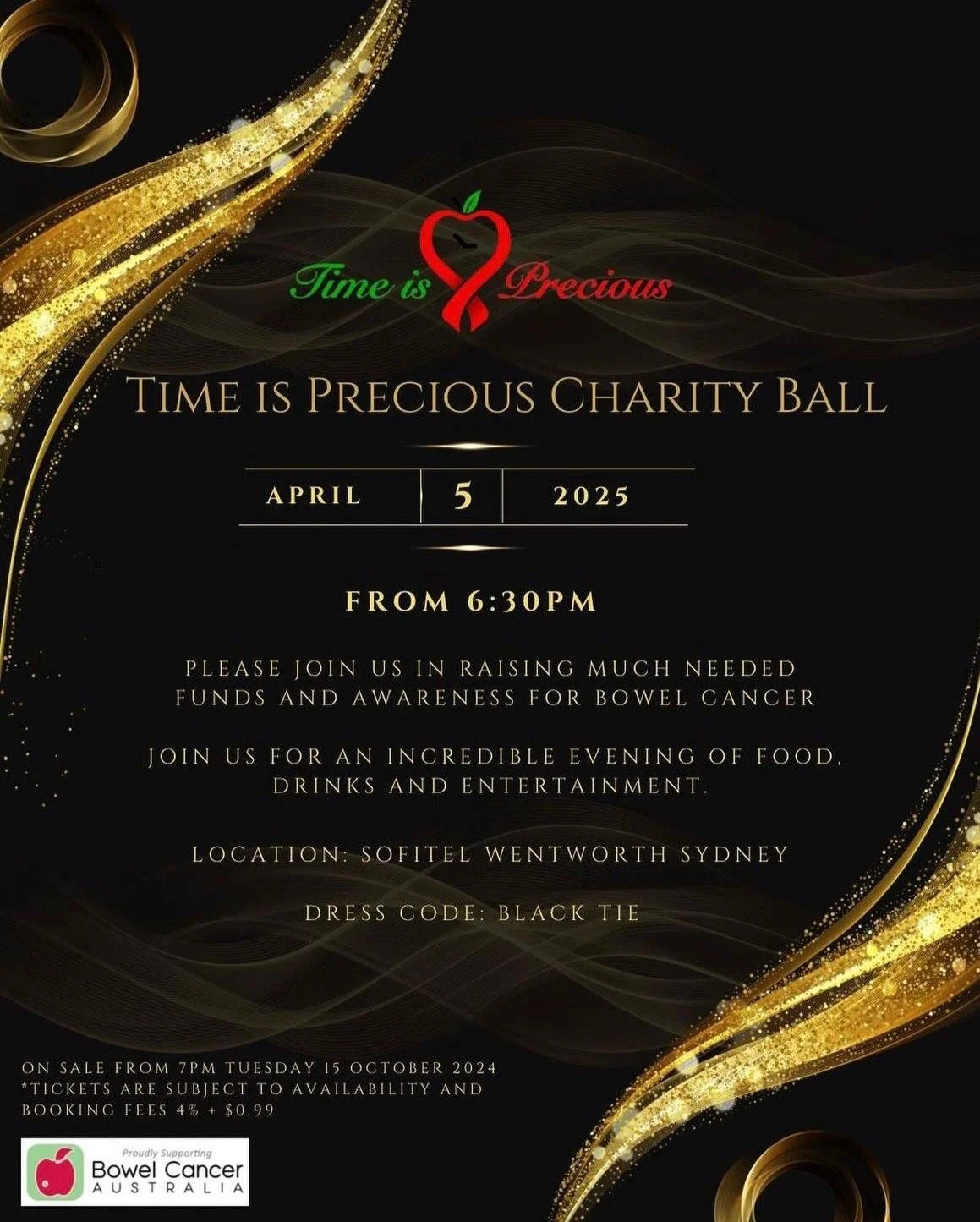 Time is Precious was established to increase the general awareness of Bowel Cancer. Our teams purpose is to promote, prevent and provide for Bowel Cancer Australia, the leading national bowel cancer charity. Their efforts are dedicated to prevention, early diagnosis, research, quality treatment and ensuring the best care for everyone affected by bowel cancer. With 100% of our proceeds donated to their incredible cause, we hope to encourage everyone to join us in a movement to eradicate the bowel cancer stigma and decrease the fatality rate. Current statistics of bowel cancer, particularly in Australia, are extremely concerning. At Time Is Precious, we have the ability to make an impact in this community by working together, sharing experiences and showing compassion. Help us raise awareness to educate the nation further about the risks and concerns of this awful disease.